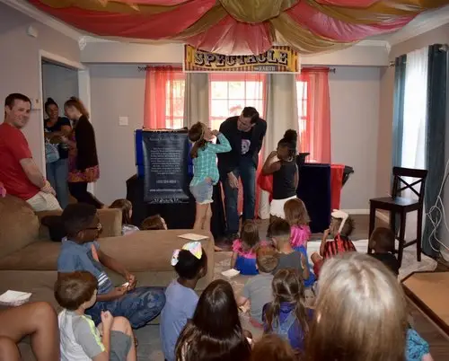 As a former award-winning teacher, I have no problem holding the attention of a room full of children so you can have time to sit back and enjoy your child’s laughter.